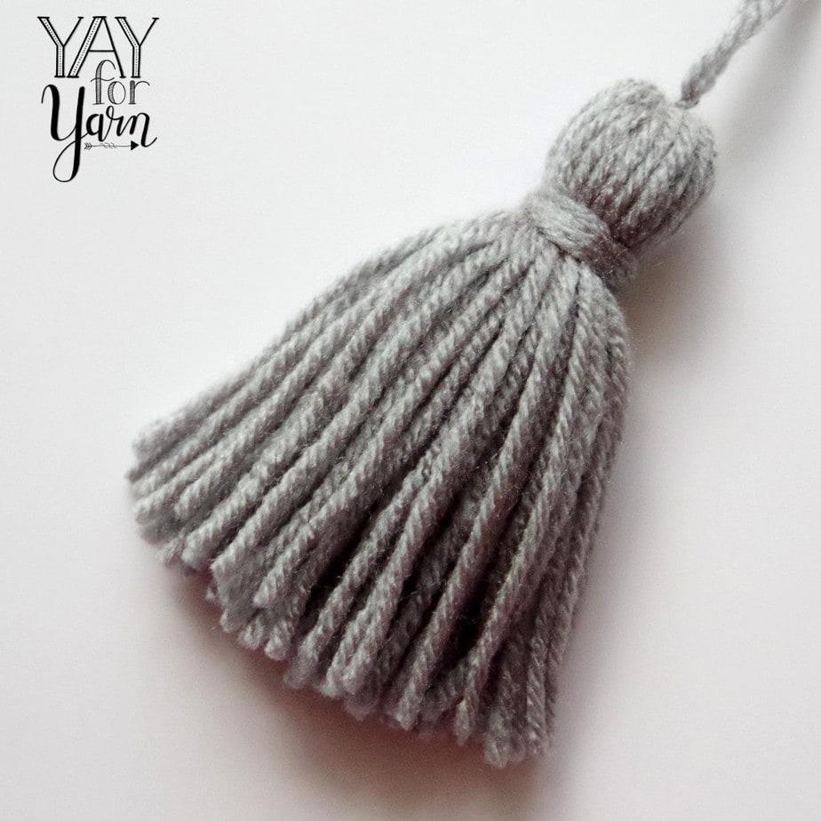 I like my tassels nice and fluffy, so I wrapped the yarn many times to achieve a full, fluffy look. If you want a thinner tassel, just don’t wrap the yarn around as many times. These can be made from yarn of any weight category, and from many other types of string as well.
